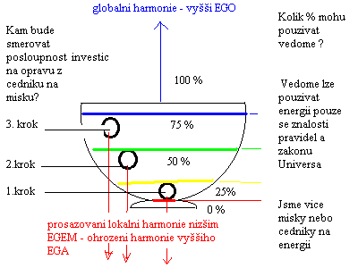 (K) Přesně. Je velmi důležité nalézt prapůvodní příčinu. Najít prvopočátek a ten odstranit a ne řešit jen následek. To lze přirovnat snaze člověka, který chce, potřebuje pro dosažení svého očekávaného stavu, nosit vodu a myslí si, že je pro tuto činnost vybaven miskou. Problémem je to, že on pro tuto vodu, energii jde s cedníkem místo misky. Z té misky resp. cedníku mu pak větší či menší část vody (energie) vyteče a vytéká, do té doby než to pozná. A jsme opět u stavu poznání.