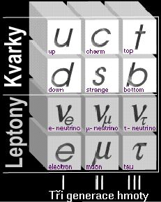 Obrázek č.9 III. generace částic ( 2x 6 ) a nosičů sil (4 ) z internetové presentace „Dobrodružství s částicemi“.